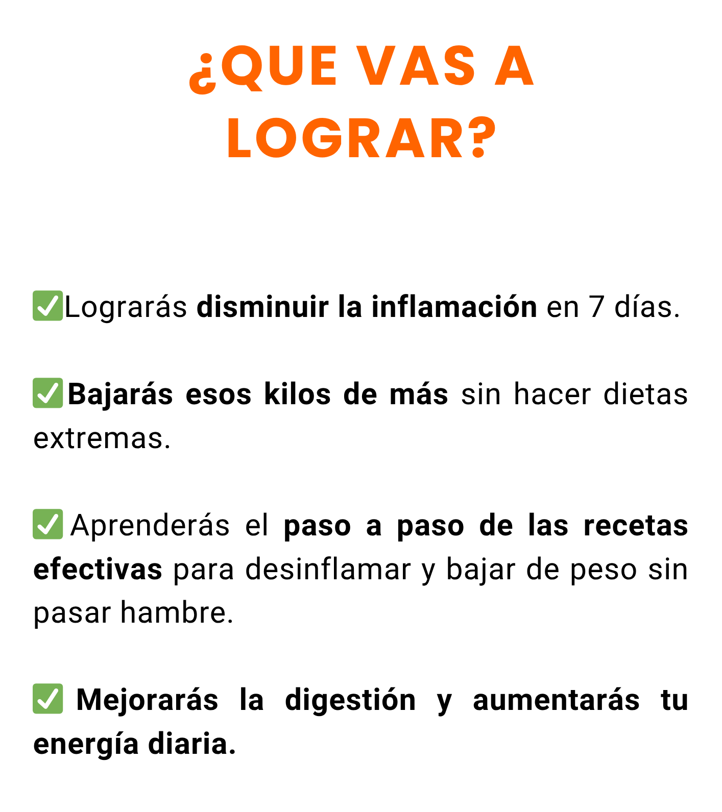 - La guía principal con +100 recetas saludables para reducir inflamación, bajar de peso y recuperar energía y vitalidad.